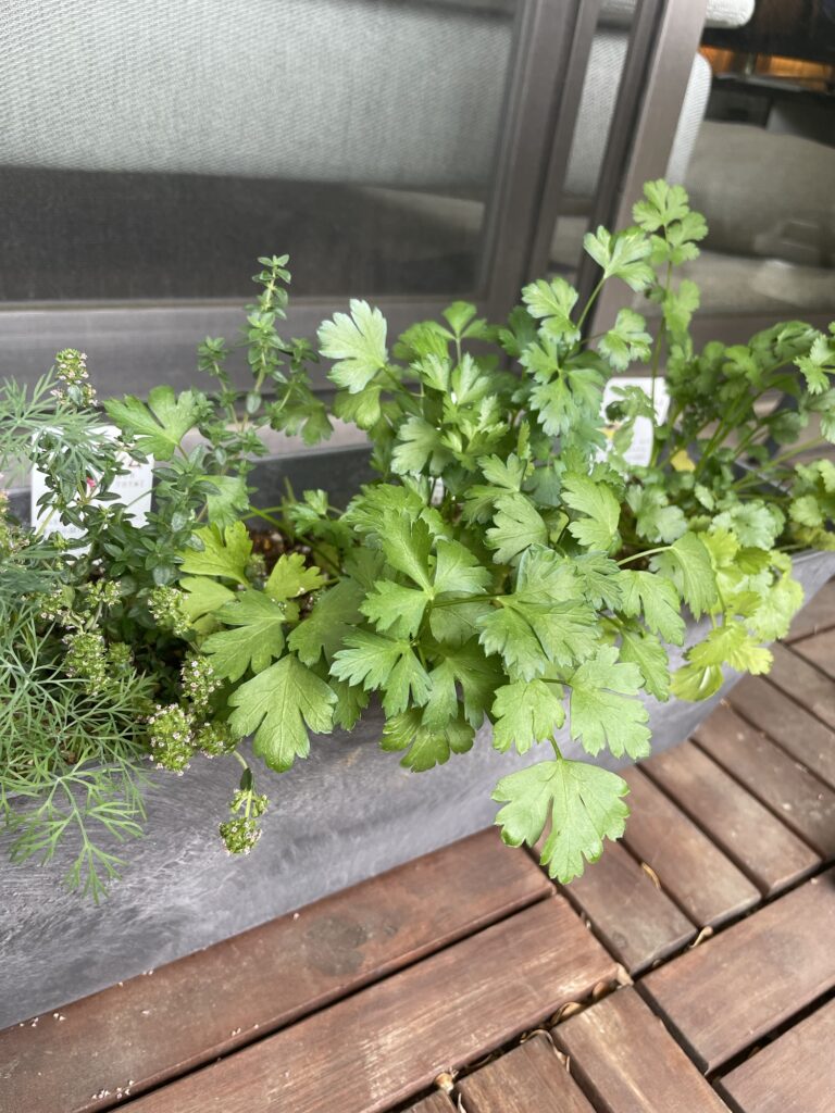 ちなみに今プランターで育ててるのは、パクチーとイタリアンパセリとタイムとディル。