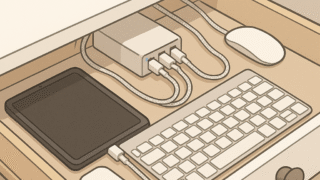 デジタル×ミニマルLife 引き出しの中で完結する充電ステーション。シンプルで便利な収納術 デスクの引き出しの中を充電ステーションにしてみたら、配線の煩わしさが消えてすっきり。Anker PowerPort 6を使った簡単な工夫で、シンプルで便利な収納と快適さを両立できた。 2025.09.15 デジタル×ミニマルLife