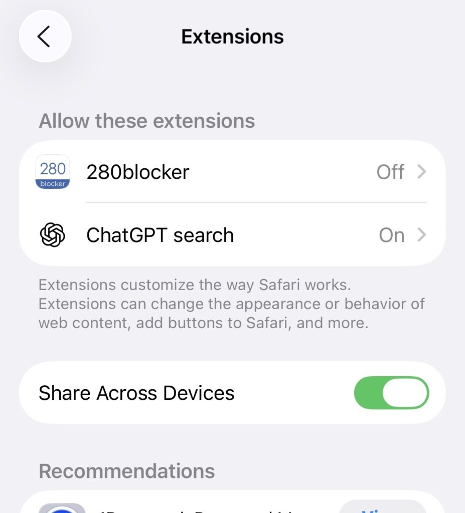 - 設定アプリ → Safari → 拡張機能(Extensions) を開く