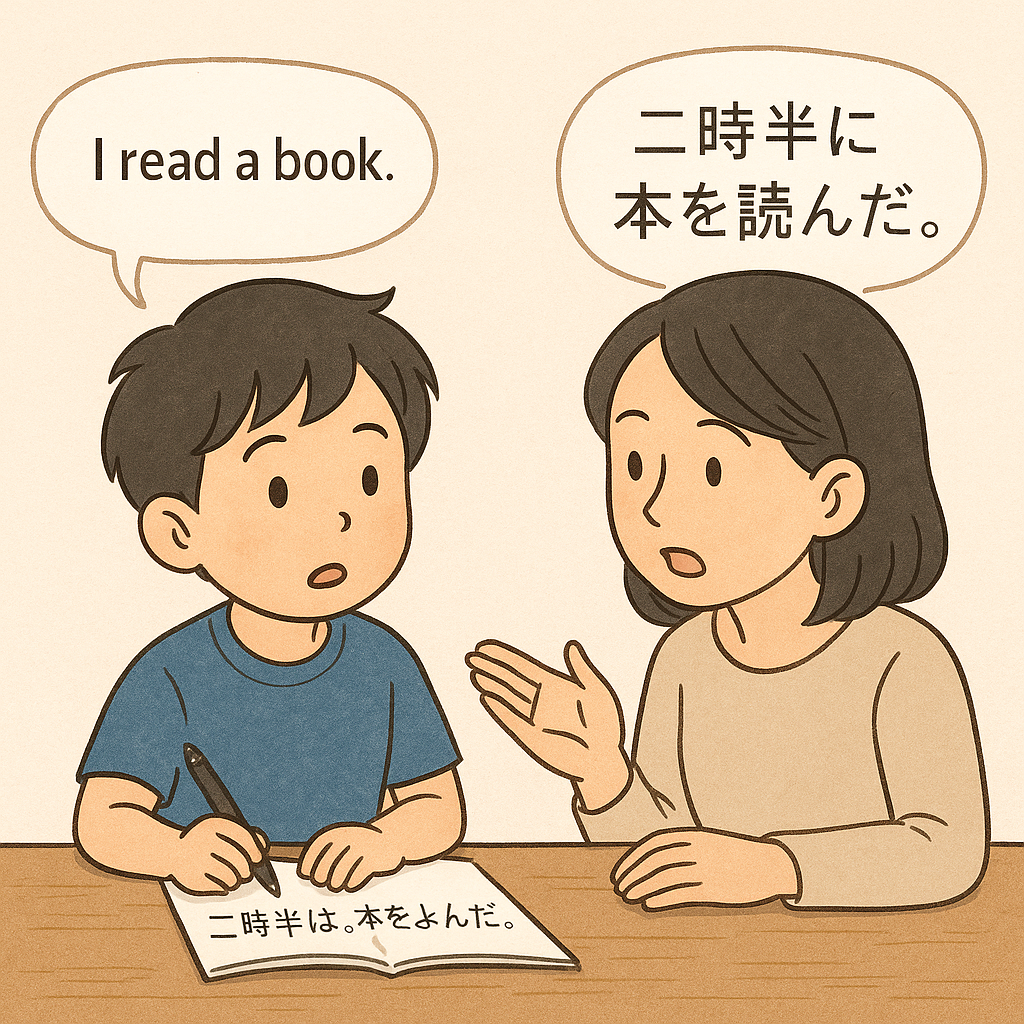 このやり取りを見て、今は英語の構造を先に思い浮かべてから日本語へ写像しているのだと感じた。助詞「は/に/で」のような微妙な使い分けは、日本語の感覚が育つにつれて自然に整う部分が大きい。だから、現時点での違和感は「日本語ができていない」からではなく、英語優位で考えているためにマッピングが揺れているだけなと捉えている。