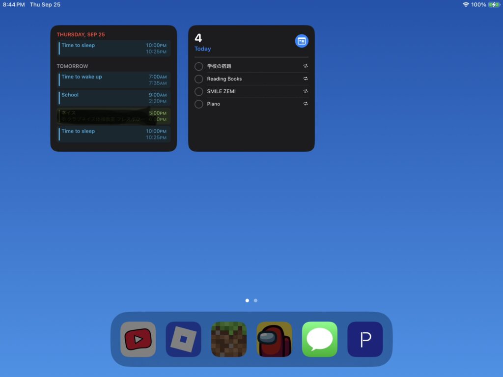 リマインダーは一度登録すれば、繰り返し設定で毎日自動的に更新される。親がリセットする必要はない。さらにウィジェットとして表示させているので、子供がiPadを開くと真っ先に目に入る。