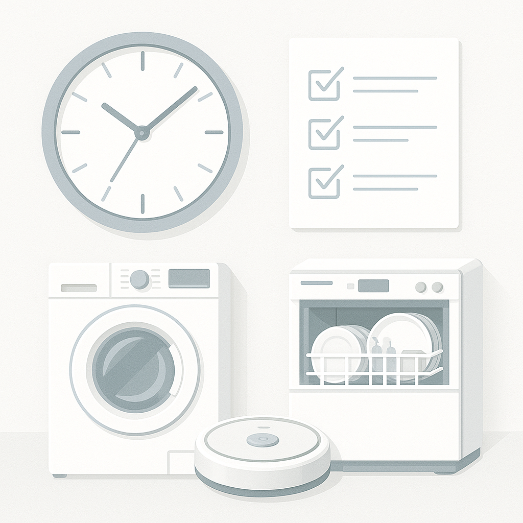 デジタル×ミニマルLife 共働き家庭の週末家事ルーティン。トータル60分の超時短術 共働き家庭の週末家事ルーティンを紹介。食洗機・ブラーバ・ドラム式洗濯機をフル活用し、実働40分・トータル1時間で終わる超時短術をまとめました。「しない家事」で最低限でも快適に暮らす工夫も解説。 2025.09.27 デジタル×ミニマルLife
