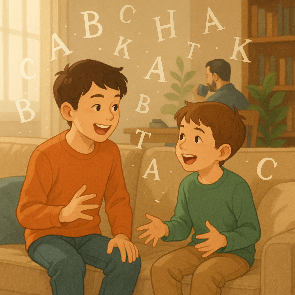 我が家では、家庭の英語量は幼児期よりも増えている。兄弟で弾丸のように話し続けたり、下の子が上の子に追いついて対等に議論したり。リビングにいると、自然に英語の会話が飛び交うようになった。