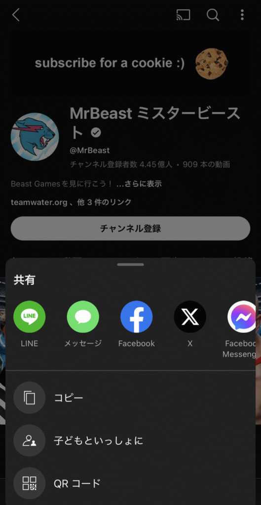 我が家の息子たちはMrBeastの動画が好きで、この方法でシェアしている。また、親がシェアしたチャンネルはYouTube kidsの目立つところに表示されるので、子供が興味を持ちやすい。